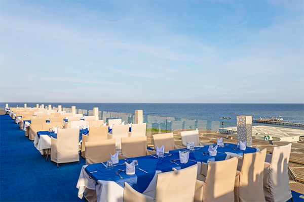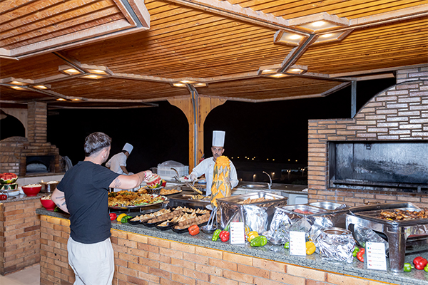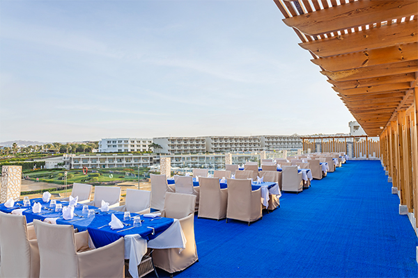 The gazebo-style restaurant at Sirena Beach Resort & Spa offers a relaxed al-fresco dining setting with sweeping views of the Red Sea. Guests may enjoy light meals and refreshing drinks under the open pavilion, where the sea breeze enhances the laid-back atmosphere. With its informal charm and scenic vantage point, it’s the perfect spot for a sunset snack or casual evening gathering.